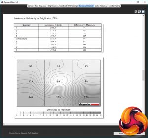 Next is the display uniformity test that checks the output of the display at various points on its surface to check if it’s consistent. Here we find the 273V7QDAB is less than stellar with a whopping maximum brightness variance of 20%. Its average is a more palatable 8.4% variance across the whole panel, but that bottom third is clearly darker than the rest of the display.
