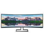 Features of the new Philips 498P9 Brilliance 32:9 SuperWide curved LCD monitor include a huge 49-inch display with a pixel resolution of 5120 x 1440, ideal for replacing two 27-inch 16:9 1440p QHD monitors set up side by side. An 1800R curvature offers a wider field of view that wraps around the user.