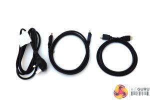 In the box you get 1.8m DisplayPort and HDMI cables along with the power wire.