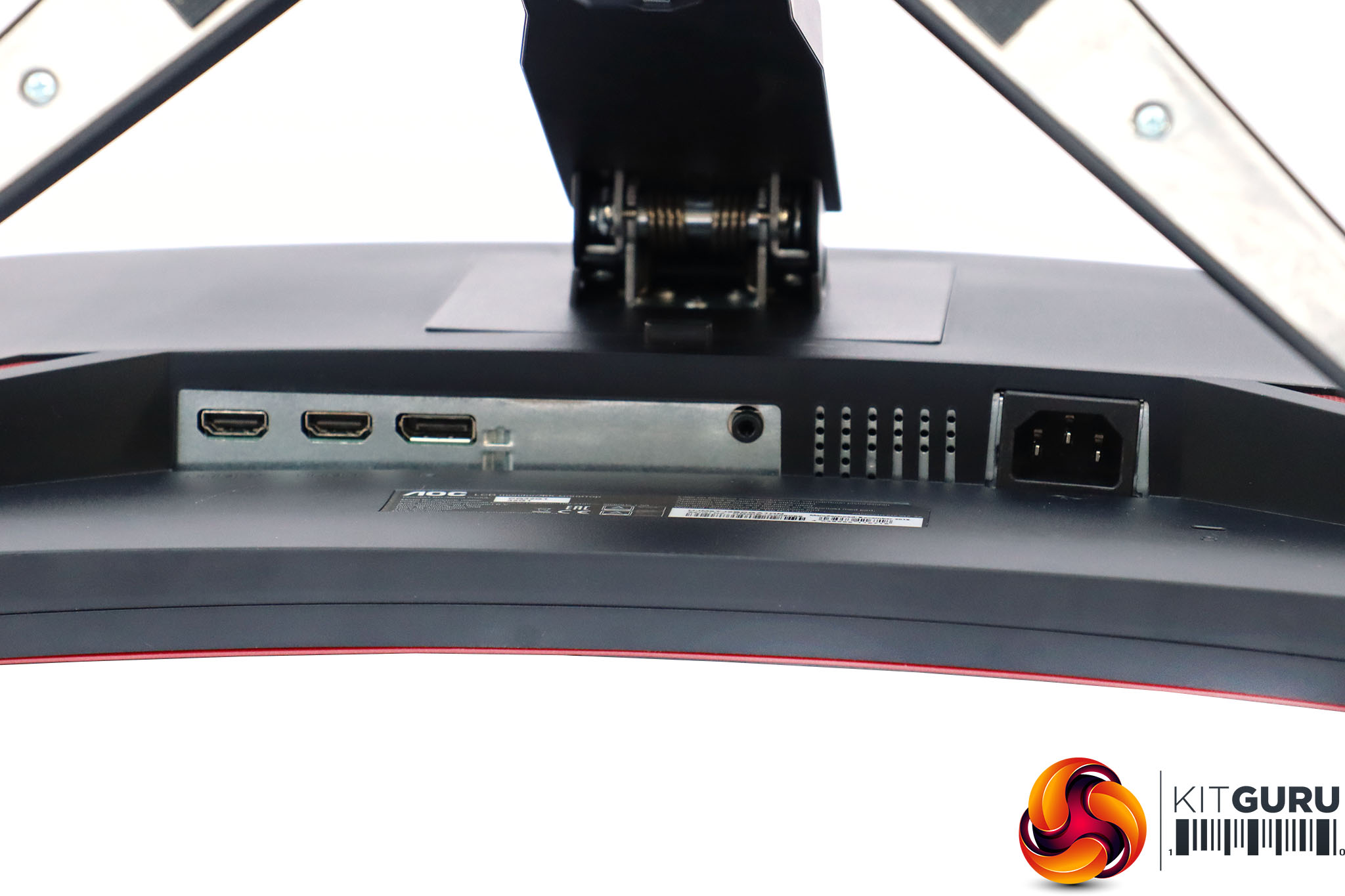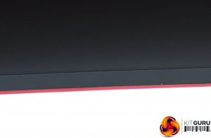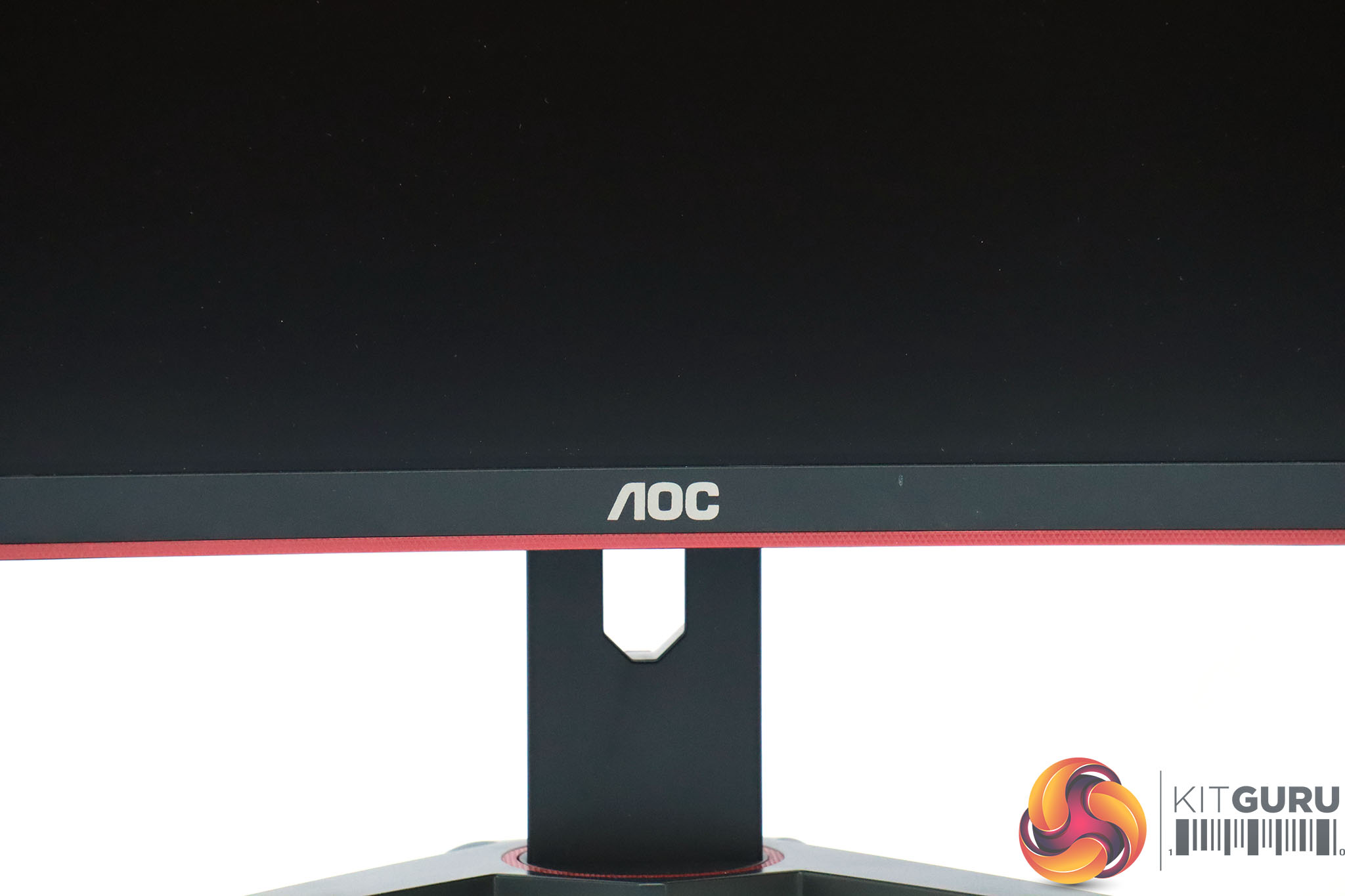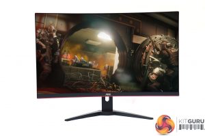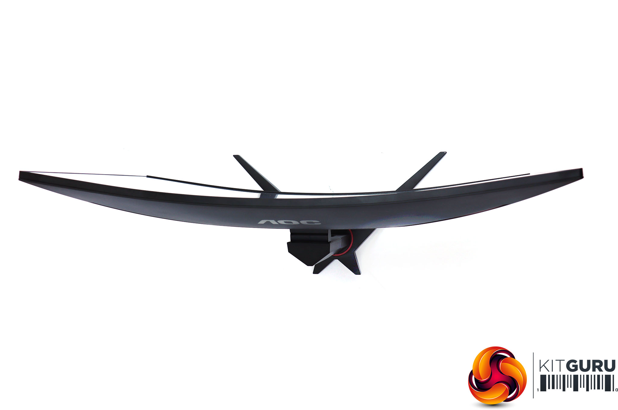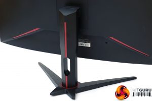 This is an attractive screen with a thin bezel at the top, left and right, and not much thicker at the bottom. The subtle deep red elements provide a sober gaming stylishness. This is the standard look for AOC's gaming screens. The stand is an angular cross, whilst the 1800R curvature is fairly subtle, unless you look from above.