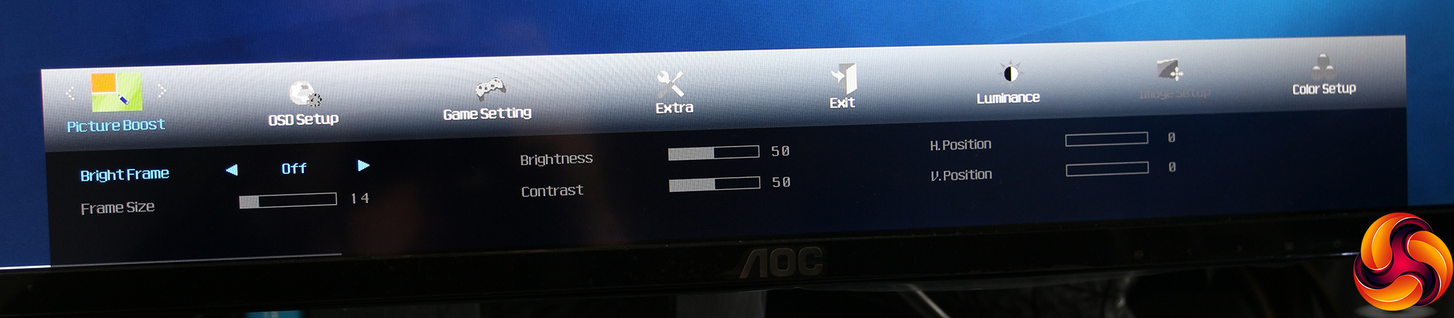 AOC's Picture Boost is one of the more curious options. It includes a Bright Frame mode, which allows you to set a rectangular area on the screen and apply unique brightness and contrast settings to this area.