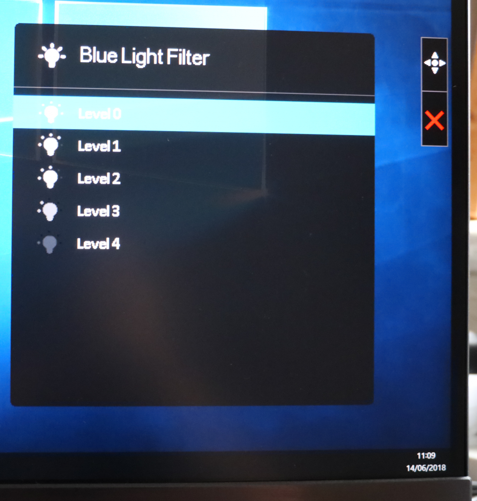 Finally, the last button before you get to the power button provides access to the blue light filter. This has four settings, other than the Level 0 off position.