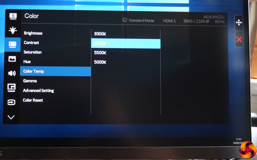The Color section provides a host of individual controls over the screen appearance. You can adjust brightness, contrast, saturation and hue. There are also four Color Temperature presets – 9300K, 6500K, 5500K and 5000K. The Gamma options include 1.8, 2.0, 2.2, 2.4, and 2.6, with 2.2 the default.