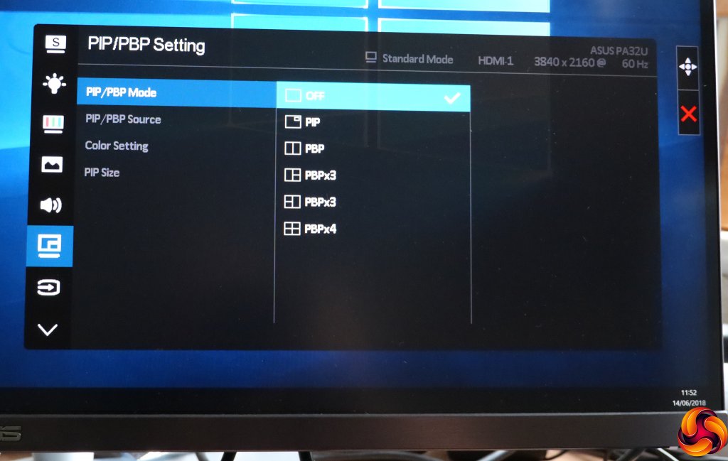 With so many inputs on this monitor, the 4K resolution, and the 32in diagonal, it actually makes sense to have highly configurable picture-in-picture and picture-by-picture options. You can have up to four sources onscreen at once, and give each one different colour settings.