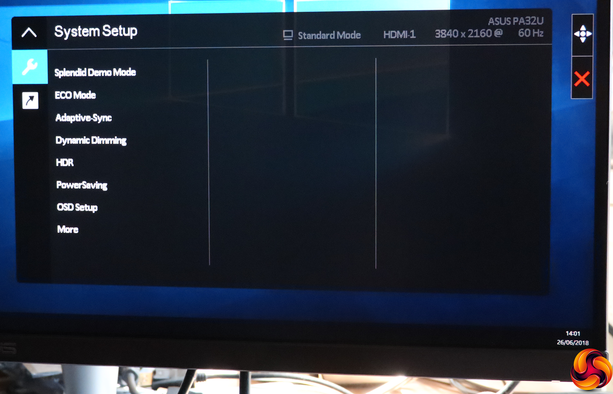 The System Setup section provides a grab bag of options, including the ability to demo the Splendid modes, so one side of the screen shows the current settings and the other what the Splendid mode will look like. You can turn on the power-saving ECO mode, and enable Adaptive-Sync (FreeSync), although the latter is less useful in this context than with a high-frequency gaming screen. Dynamic Dimming alters the screen brightness to provide a greater perceived contrast than the screen is capable of. The HDR option enables support for content supplying this, which also necessitates graphics hardware and a cable connection that supports it.