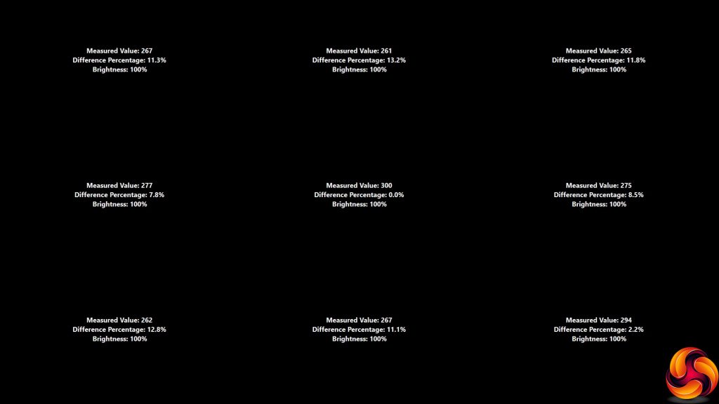 Brightness uniformity is also rather mediocre, with the top edge showing particular variation.