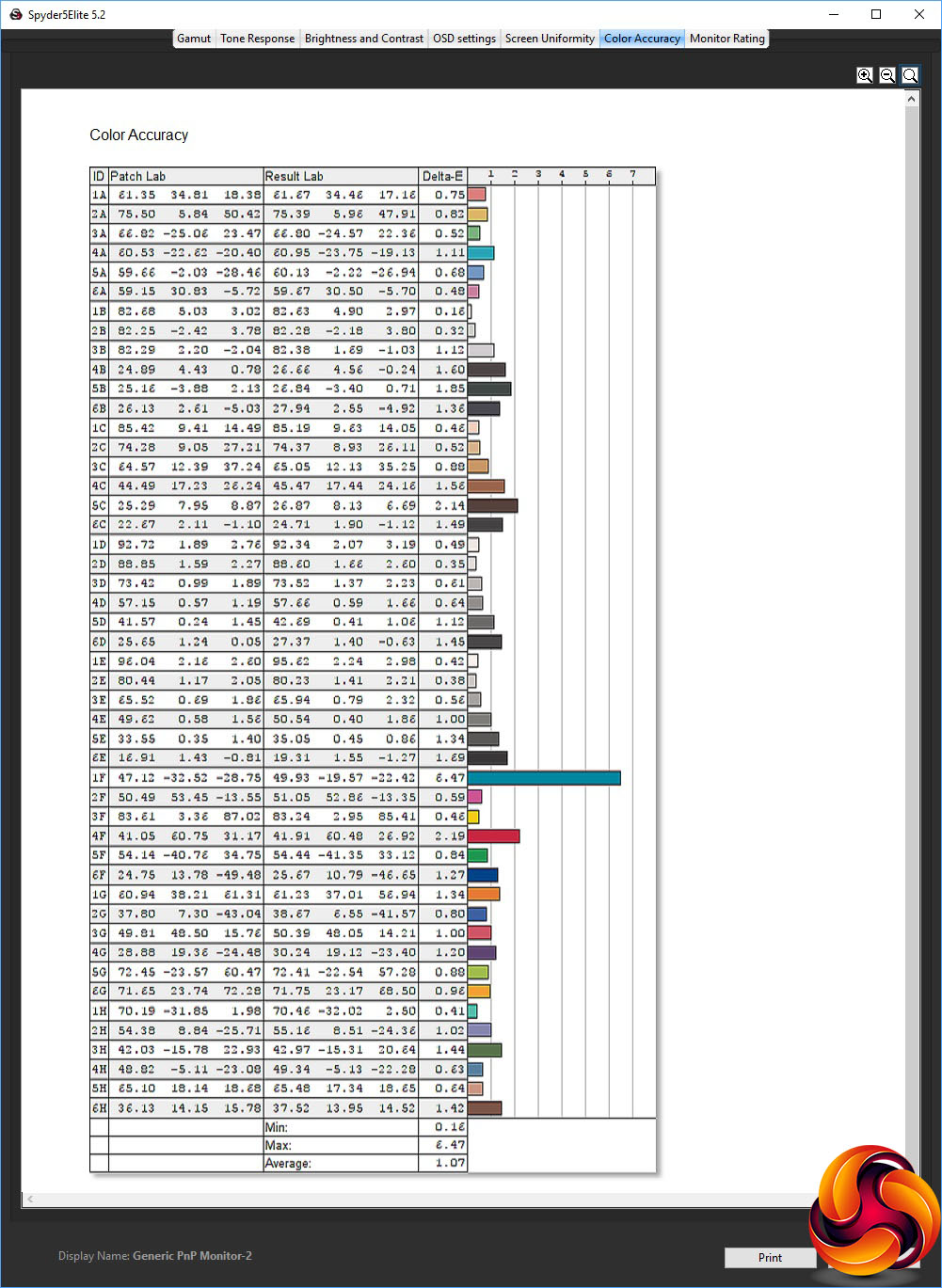 - The colour accuracy, expressed as a Delta E ratio, with a result under 3 being fine for normal use, and under 2 being great for colour-accurate design work.