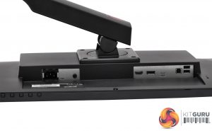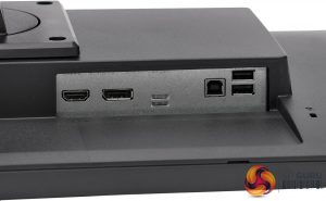 The GB2560HSU isn't the most port-packed monitor. The analog audio minijack output is on the right side next to the power connection. The HDMI and DisplayPort connections are on the left, with the two USB 2.0 ports and USB upstream connections furthermost left (when viewed from the front).