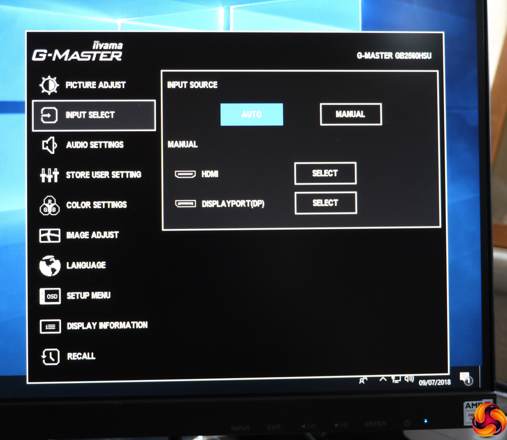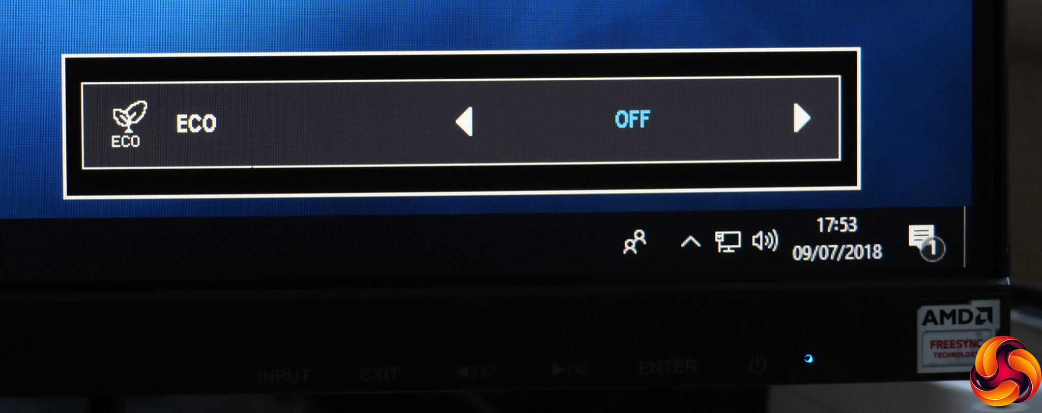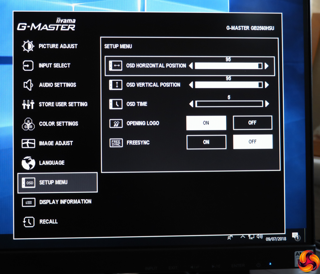 You can configure where the OSD appears in the Setup Menu, as well as how long it stays onscreen and whether a logo is displayed when the screen is turned on. Strangely, this is also where you can enable and disable FreeSync adaptive refresh.