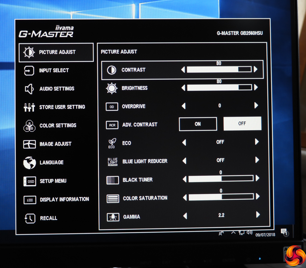 The first of the sub menus is Picture Adjust, and it's packed with options. The menu design isn't exactly funky, but we really like the functional look here, which makes it very clear what your options are and which ones have been selected. Iiyama also doesn't expect you to scroll down for options that are currently off-screen – everything in this category is visible on one page.