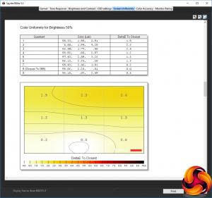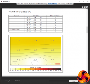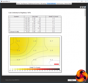 Our main test involves using a DataColor Spyder Elite 5 Colorimeter to assess a display’s image quality. The device sits on top of the screen while the software generates colour tones and patterns, which it compares against predetermined values to work out how accurate the screen is.