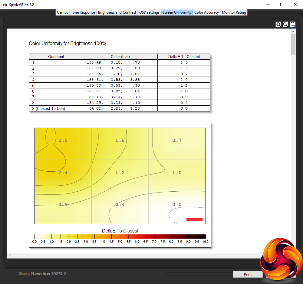Brightness uniformity isn't particularly great either, with a considerable deviation along the top edge, and almost as large a deviation on left and right.