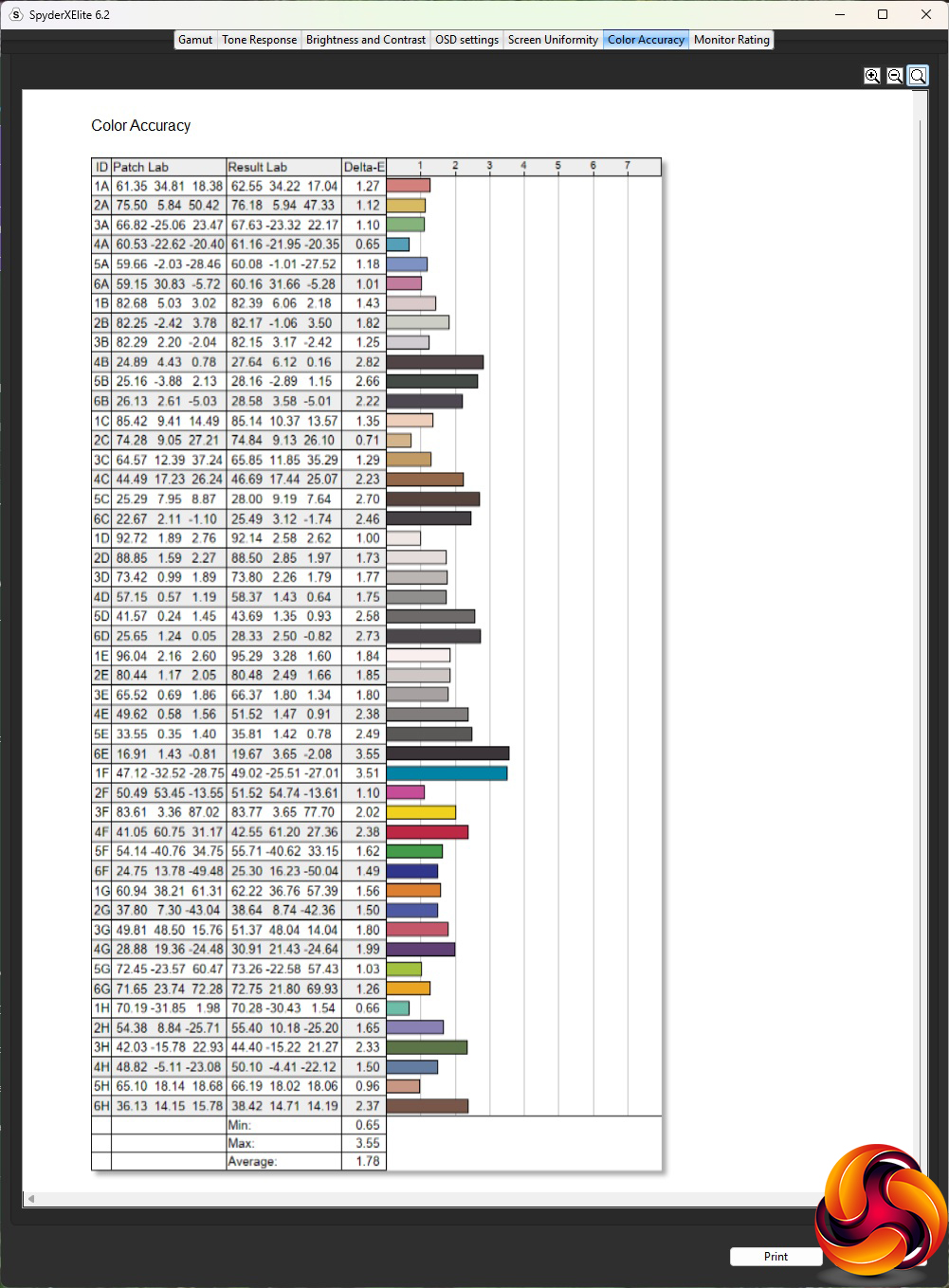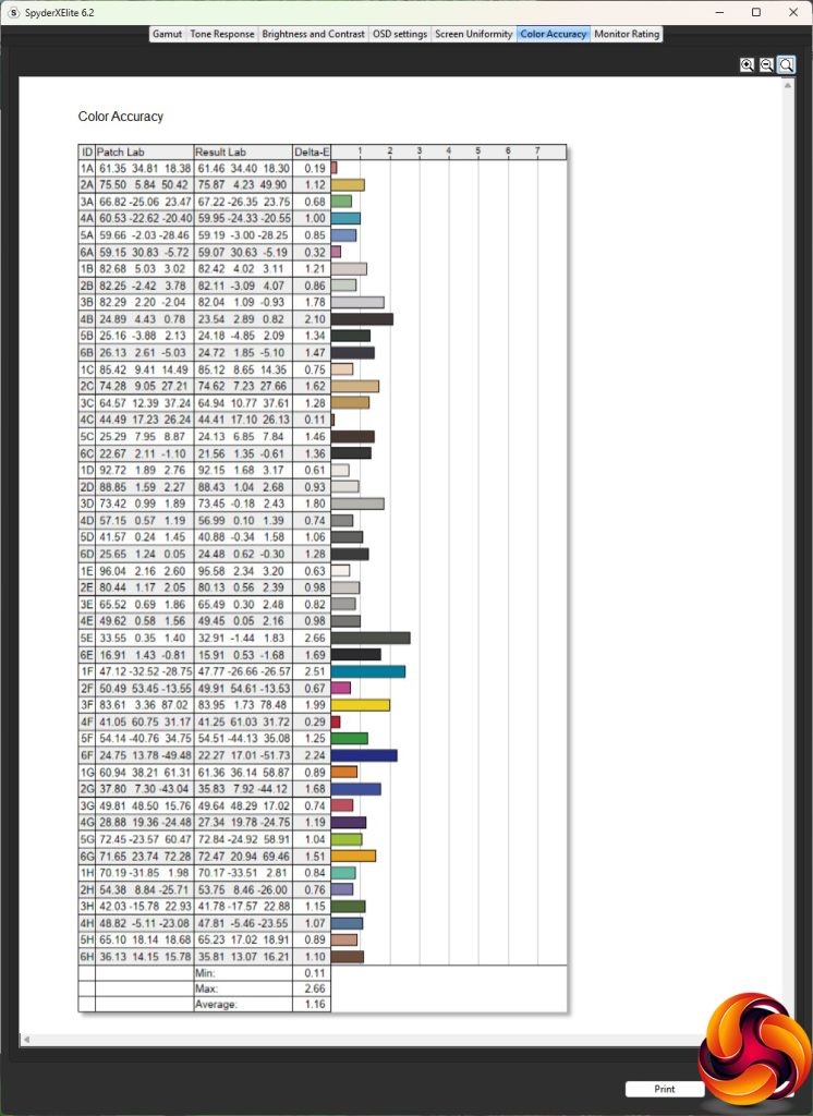 - The colour accuracy, expressed as a Delta E ratio, with a result under 3 being fine for normal use, and under 2 being great for colour-accurate design work.