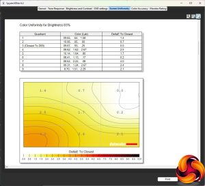 Overall, brightness and colour uniformity are excellent, accuracy good, with excellent brightness and contrast levels available. These are mostly the capabilities you'd hope for in a professional setting, although a bit more accuracy would make it even better. The gamut readings are the biggest weakness.