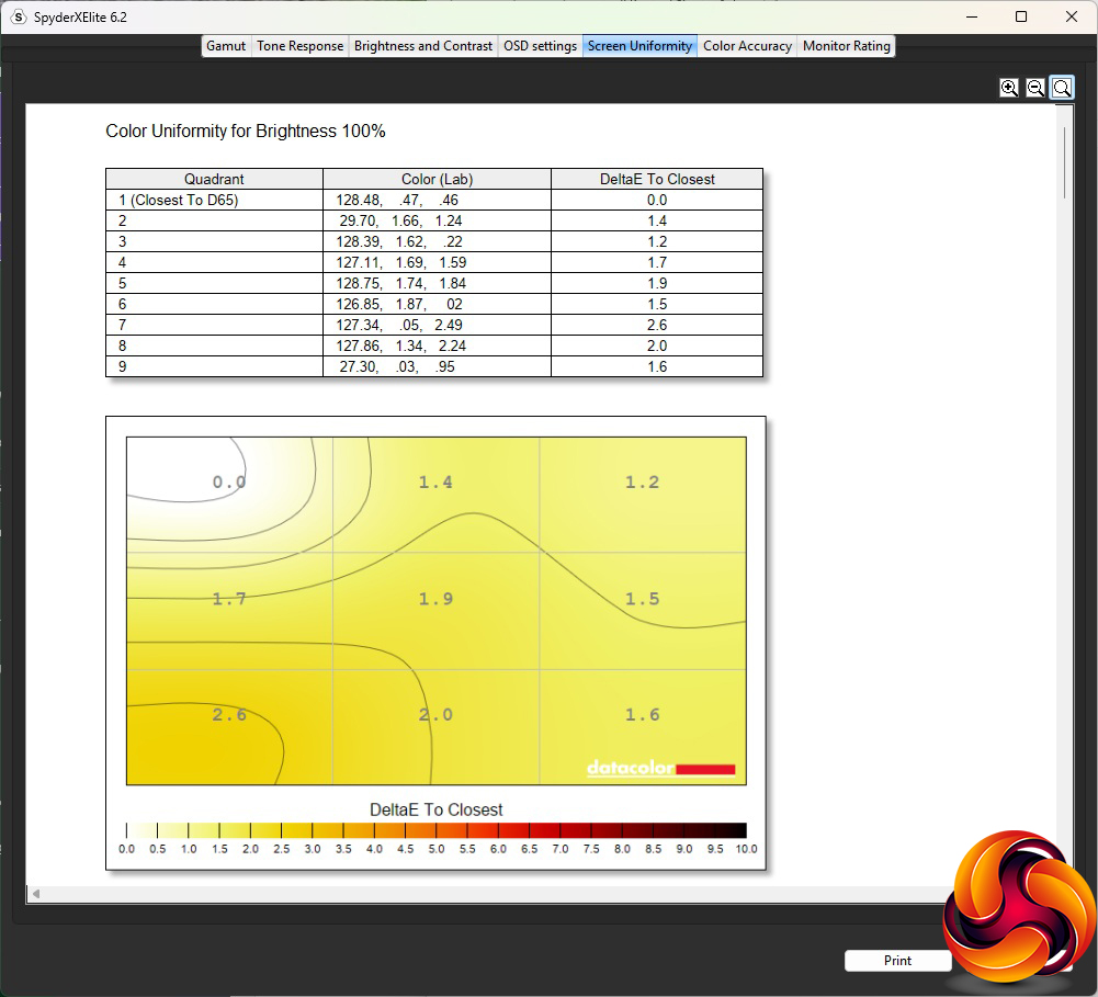 Brightness Uniformity, in contrast (see what we did there?), is good across the entire width and height of the screen.
