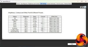 - A monitor’s contrast ratio at various brightness levels in the OSD.