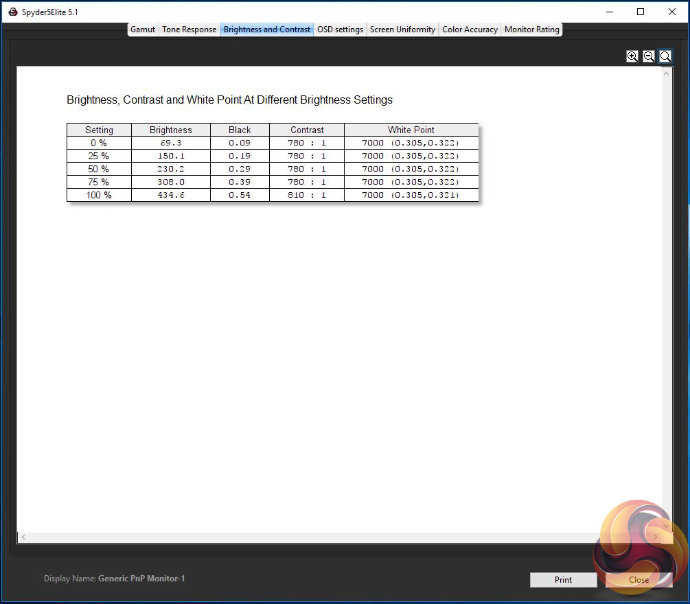 - A monitor’s contrast ratio at various brightness levels in the OSD