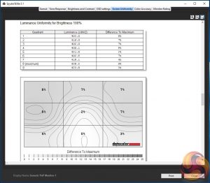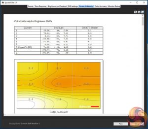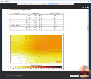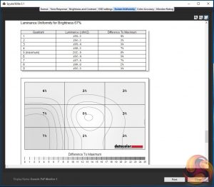 Of more importance for a gaming panel, arguably, are brightness and colour uniformity. Both clock in with reasonable if not stellar consistency. There are hot spots, but the deltas probably aren’t big enough to be a significant issue in subjective use.