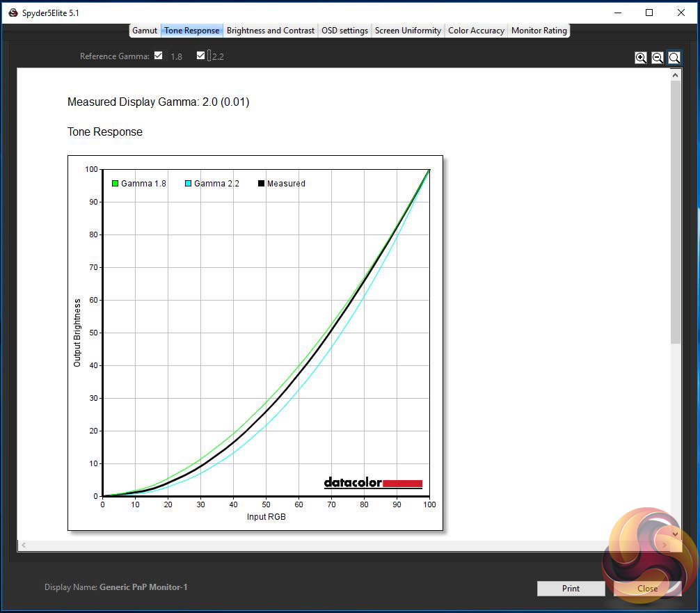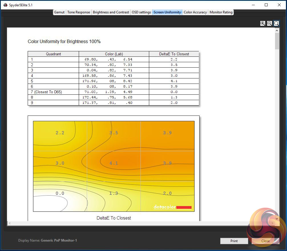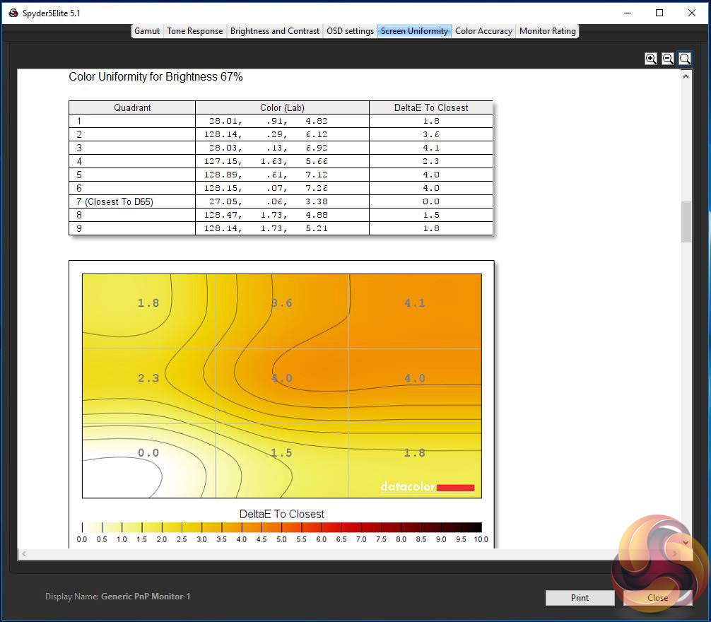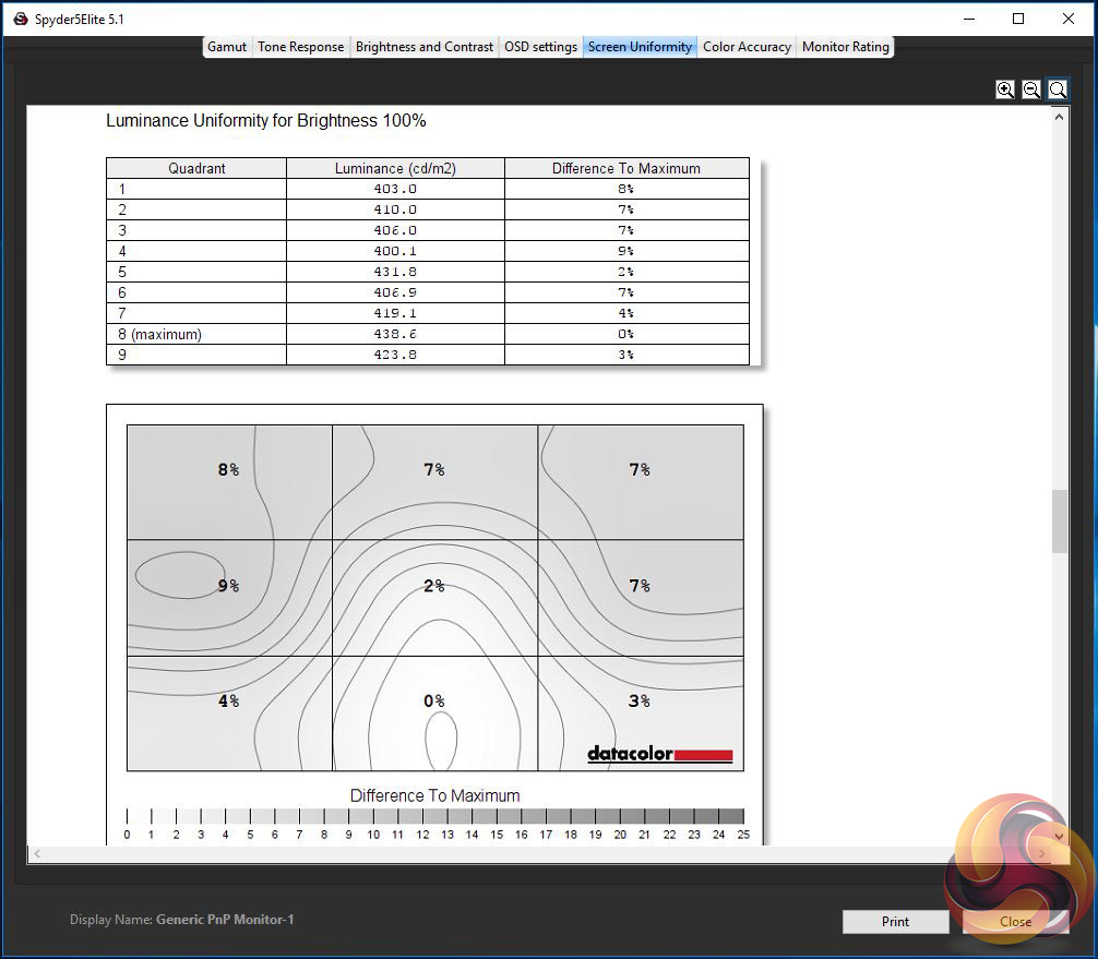 The first run through with the Spyder is completed with the screen at default factory settings. Following a full calibration, the tests are repeated.