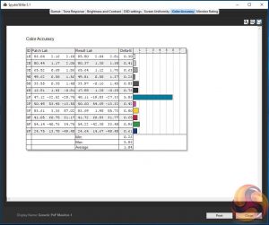 - The colour accuracy, expressed as a Delta E ratio, with a result under 3 being fine for normal use, and under 2 being great for colour-accurate design work