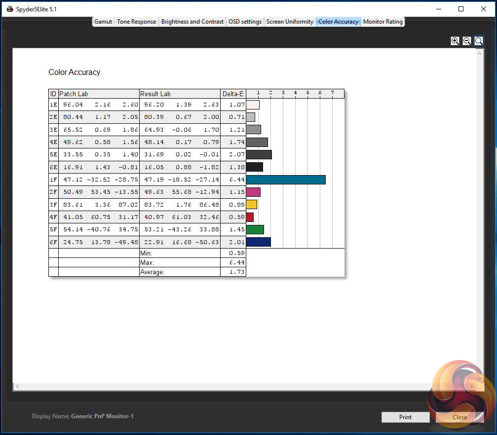 However, the post-calibrated colour accuracy improves to a Delta-E of 1.04 and it’s really only the 1F ID range where the AG251FZ has issues.
