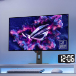 The monitors feature a new ultra-compact stand, designed for space-saving with a 60% lower footprint than previous ROG 32-inch OLED stands. Despite being more compact, it offers the same full ergonomic adjustments, including tilt, swivel, and height adjustment. Built-in Auto KVM allows seamless switching between two connected PCs using a single keyboard and mouse, and the DisplayWidget Centre program further simplifies settings, KVM control, and firmware updates from the desktop. Both monitors provide multiple ports, including two HDMI 2.1, one DisplayPort 1.4, one USB-C with 15-watt power delivery, a USB hub, and a headphone jack.