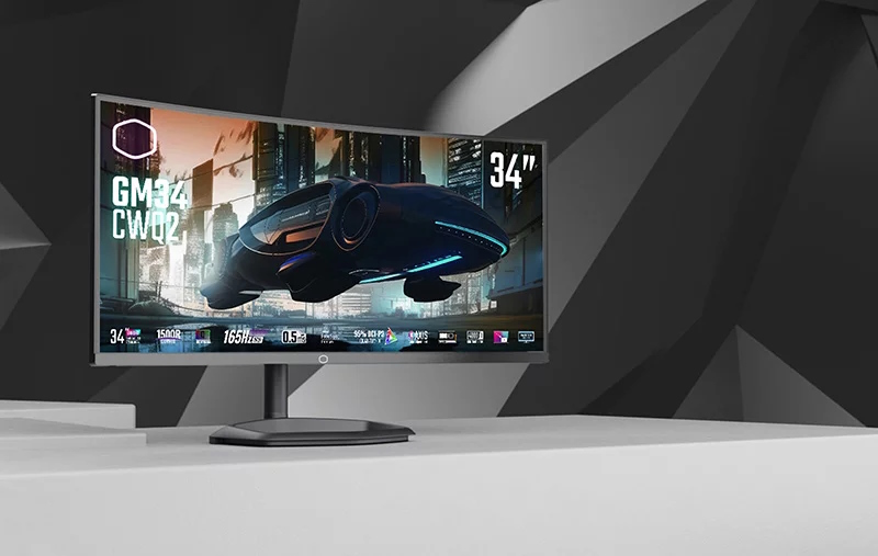 First, we have the Cooler Master GM34-CWQ2, which, according to TFTCentral, sports a 34-inch VA display with a 1500R curvature and a 3440×1440 resolution. The display's typical brightness is 320 nits, and the static contrast ratio is 4000:1. The monitor's colour bit depth is 10-bit (8-bit+FRC), which helps it cover 95% of the DCI-P3 colour space. It offers a 2ms GTG response time (0.5ms MPRT) and a 165Hz native refresh rate that can be overclocked to 180Hz.