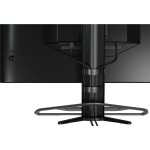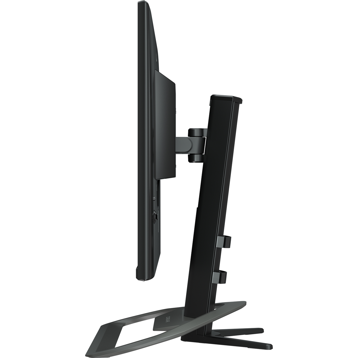The aluminium stand features a unique design aimed at streamers. On top of the stand, there's a ¼” threading that you can use to mount streaming gear, like the Elgato Multi Mount. To further integrate the monitor with your streaming setup, the Xeneon is compatible with Elgato Stream Deck software. To change the monitor settings, it's recommended to use the iCUE software. The included stand allows for tilt and height adjustment.