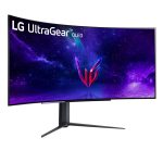 The LG UltraGear 45GR95QE-B is LG's new ultrawide gaming monitor, packing a 45-inch curved OLED panel with 3440×1440 resolution, 0.03ms response time, and 240Hz refresh rate. Like all OLED panels, the contrast ratio is pretty high, sitting at 1,500,000:1. Other panel characteristics include 10-bit colour depth, covering up to 98.5% of the DCI-P3 colour gamut.