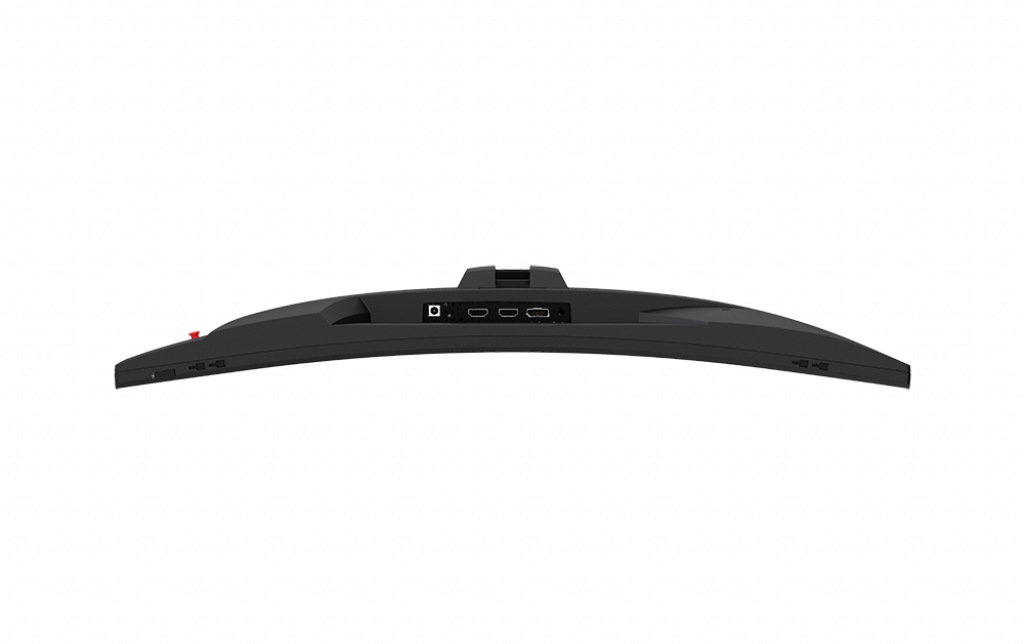 Connectivity options include 1x DisplayPort 1.2 (outputting up to 165Hz), 2x HDMI 1.4 ports (outputting up to 144Hz), and 1x 3.5mm audio-out jack. The monitor's OSD is controlled through a 5-way joystick navigator on the back of the frame. Ergonomic adjustments are quite limited, as the screen is only capable of tilting from -5º to 20º, but it has support for 100×100 VESA mounting if you wish to install an aftermarket stand.