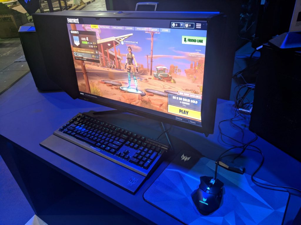 First up is the new Predator XB273K monitor. This is Acer's G-Sync version, complete with a 144Hz 4K panel. It supports the VESA DisplayHDR 400 standard and can display 90 percent of the DCI-P3 color gamut. It also comes with Acer's Ergostand design, giving users pivot, swivel and height adjustments.