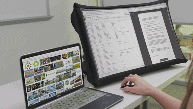 Multiple monitor setups are great when working at home but it's not exactly easy to lug around an extra monitor while travelling. The Spud display aims to solve that problem by creating a 24-inch monitor that can fold up like an umbrella, making it easy to carry around when you need to do things away from your regular setup.