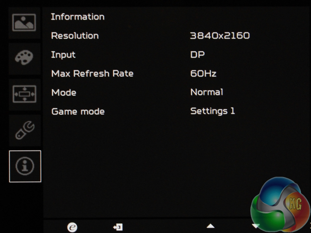Lastly, an info menu shows basic information about the current display settings.