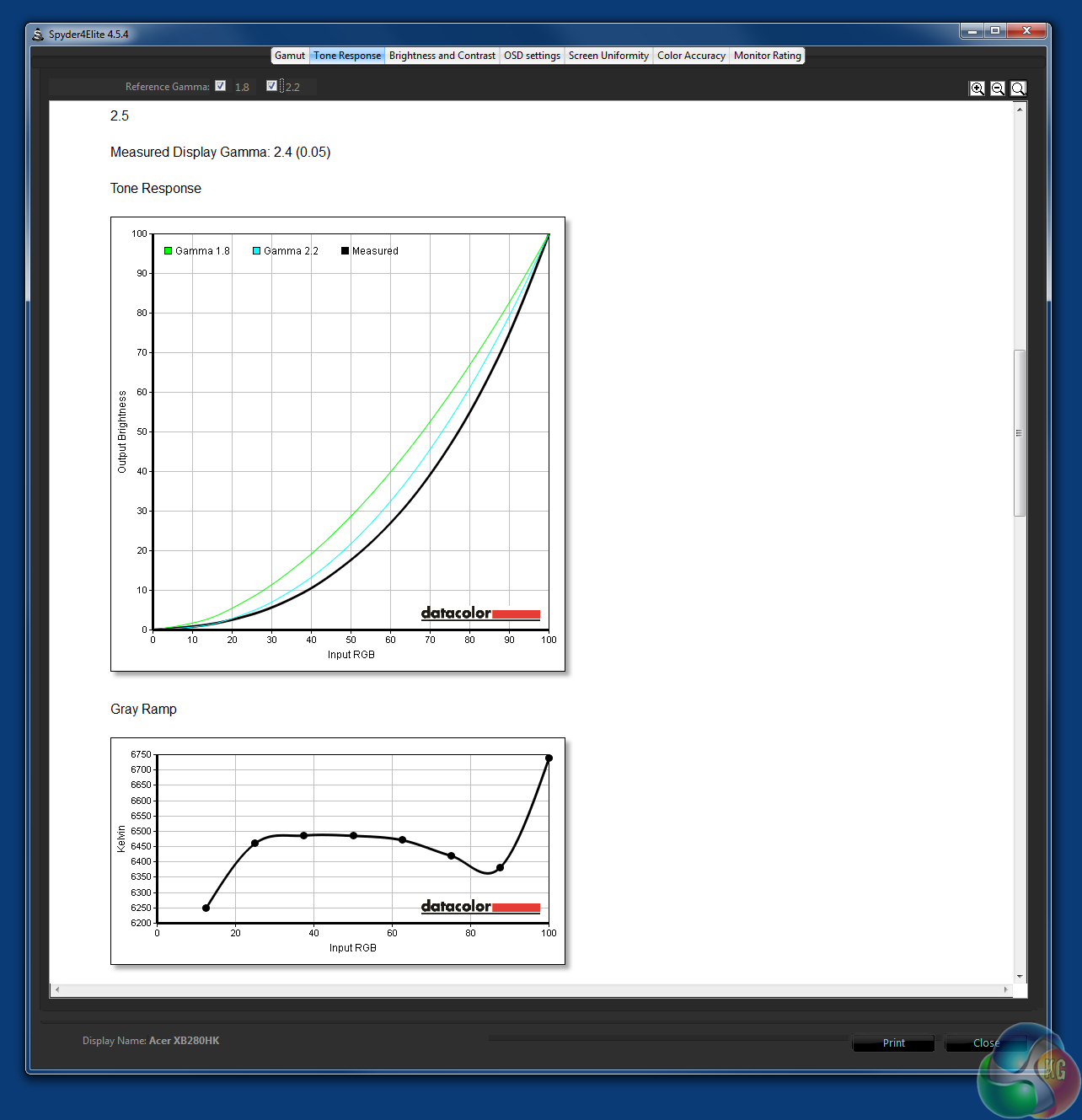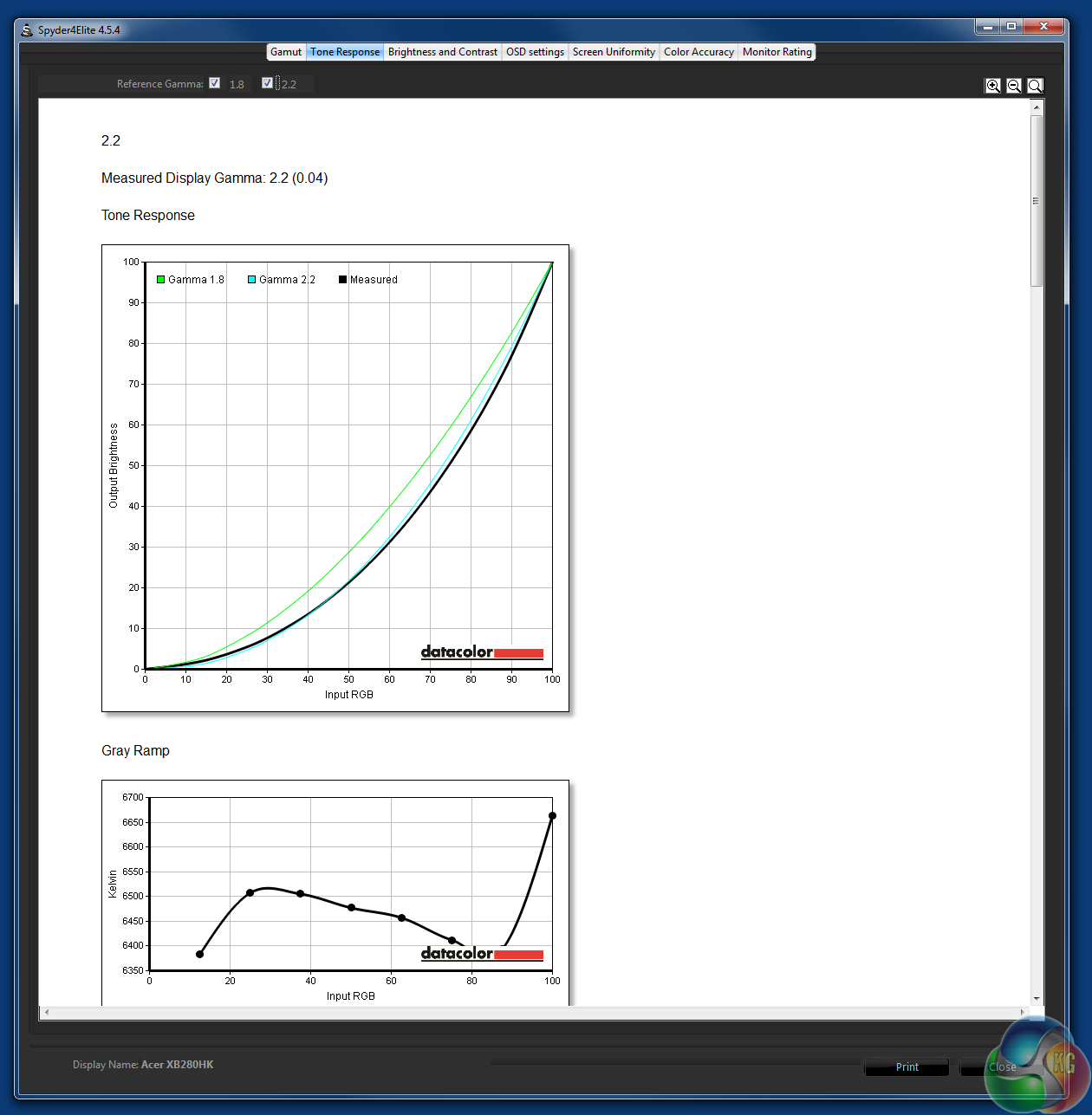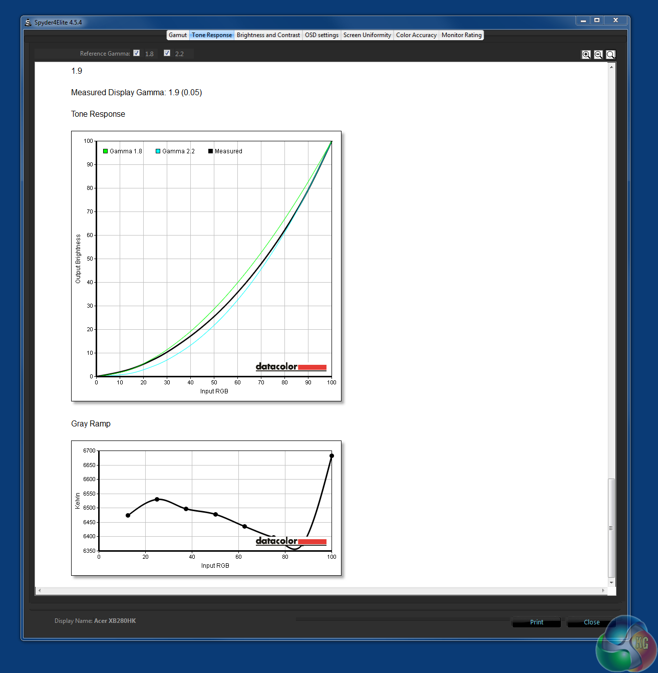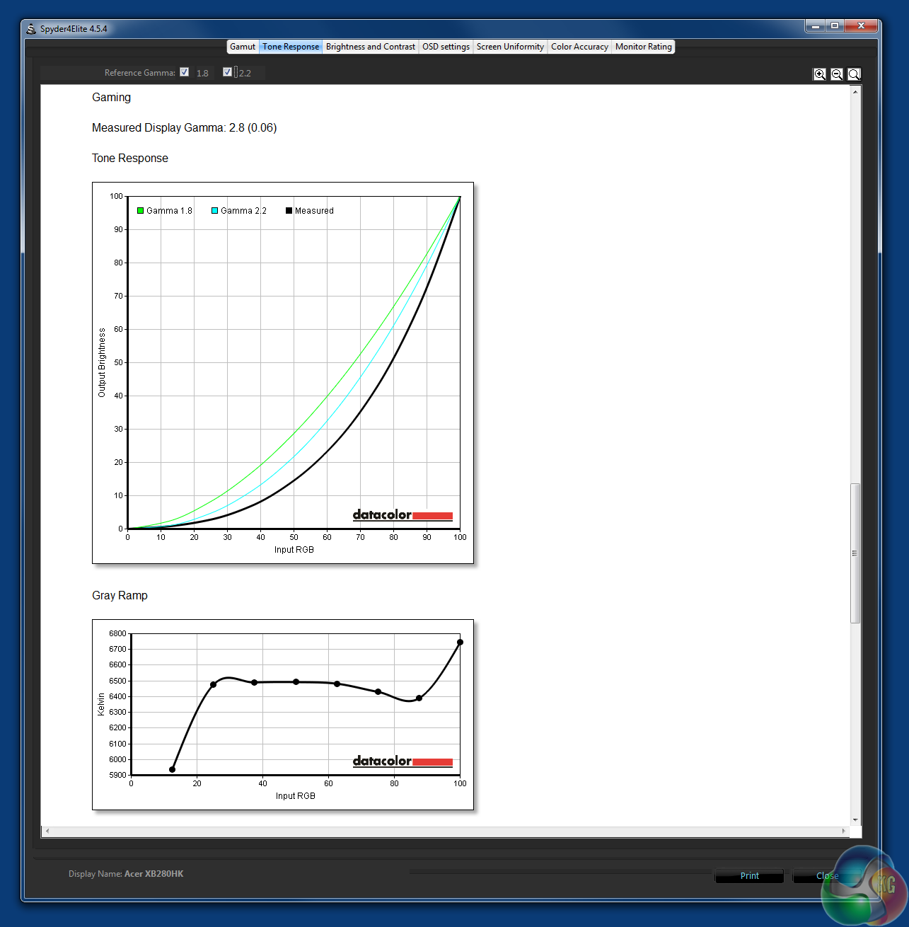 The XB280HK exhibits gamma results that are absolutely spot on the values they are supposed to be. We noticed the ‘gaming’ preset has a gamma of 2.8, and looked very good when playing games.