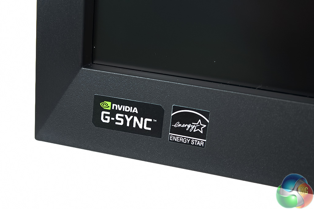 There’s a G-Sync logo and Energy Star sticker on the lower left of the bezel.