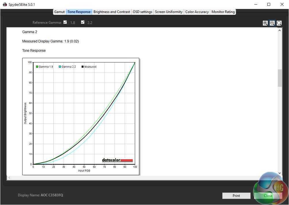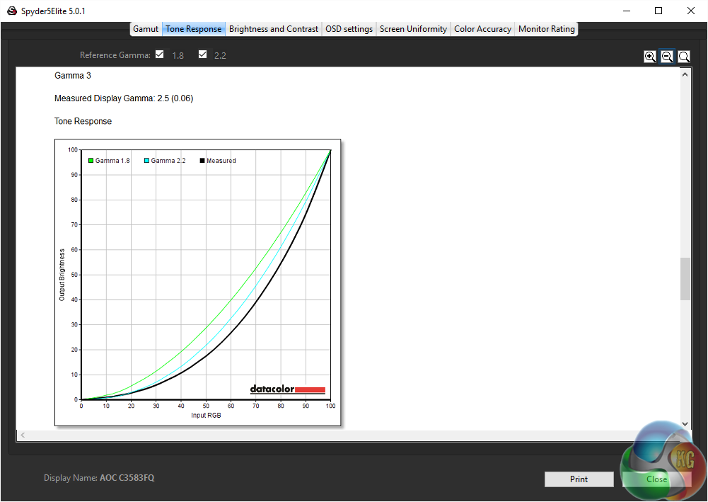 The AOC C3583FQ features an uncalibrated colour accuracy of 1.79 Delta E. A very good result, showing VA screens can be as accurate as any other.