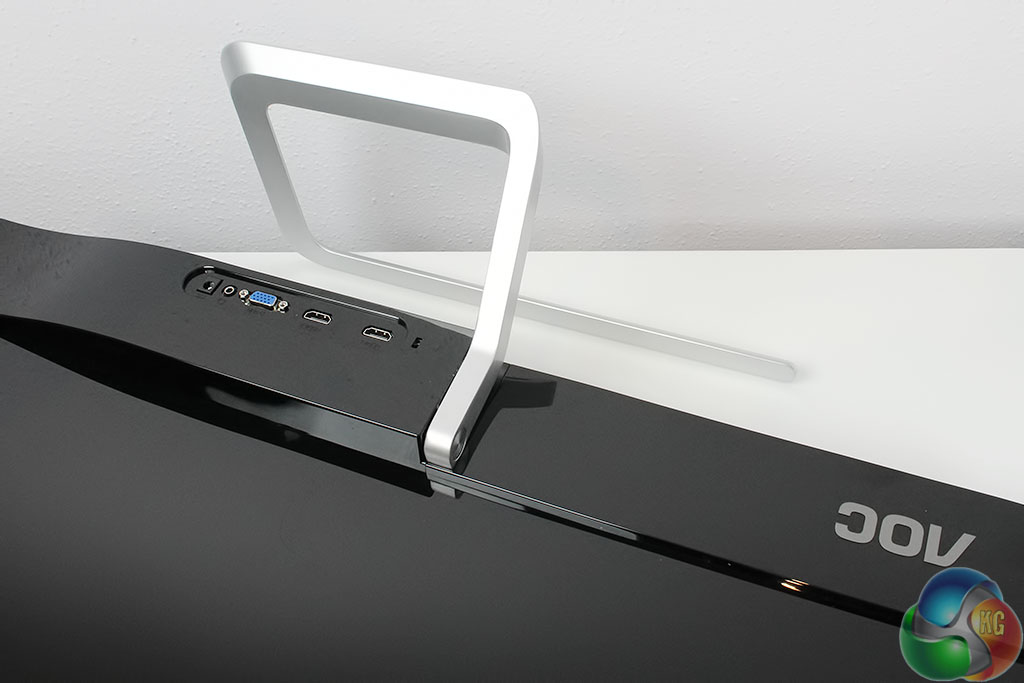The stand uses smooth curves and is shaped into a sturdy rectangle at the bottom to handle the weight of the display, not that it’s particularly heavy.