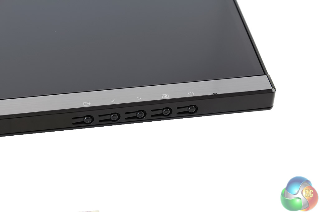 The last button powers off the device, next to a small power status LED that glows blue when the Q2577PWQ is on, and red when it’s in standby mode.