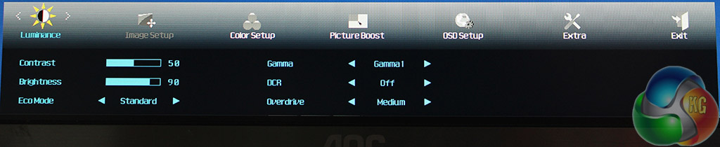 The buttons used to control the OSD aren’t the only similarity with other displays from AOC, since the menu options and factory default settings are almost identical too.