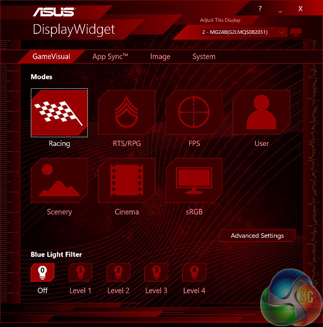 It replicates the majority of the settings in the OSD, and a quick click lets you cycle through the various monitor settings, changing the GameVisual preset, adjusting the Blue Light filter and fine tuning the brightness, contrast and RGB levels.
