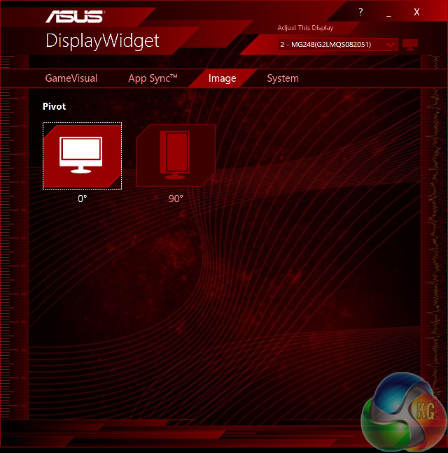 There's a quick shortcut to the pivot mode, flipping the screen to display in portrait mode. And there's a system setup screen to view information such as the monitor serial number, update the DisplayWidget app and so on.