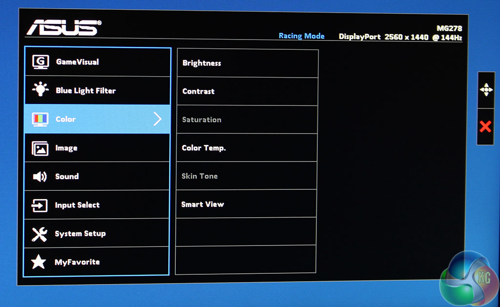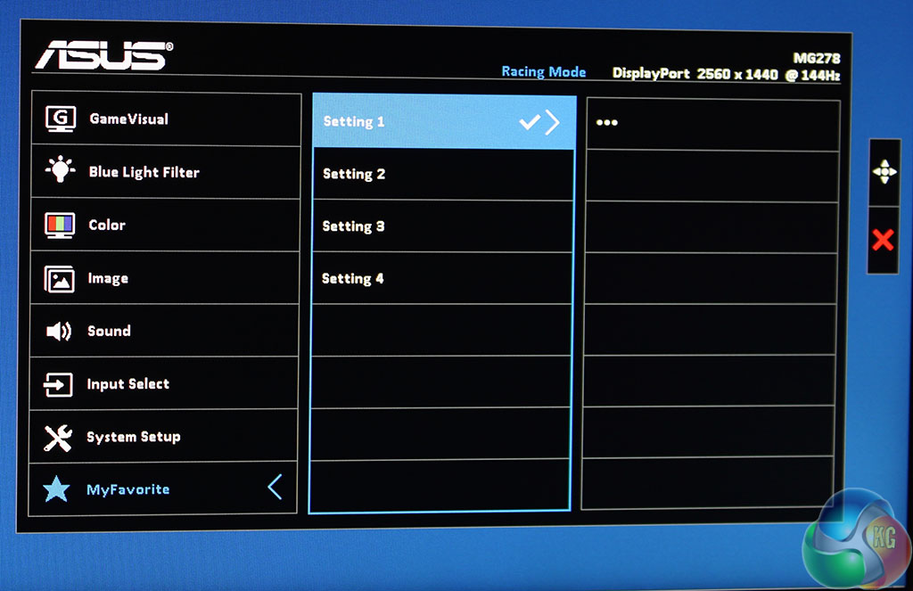 On the MG279Q, this menu contains a setting to enable or disable FreeSync, but it has been removed from the MG278Q. Why? Because the panel supports FreeSync up to its maximum refresh rate, unlike the MG279Q, its always on. The only way to enable or disable FreeSync is in the AMD Catalyst Control Centre.