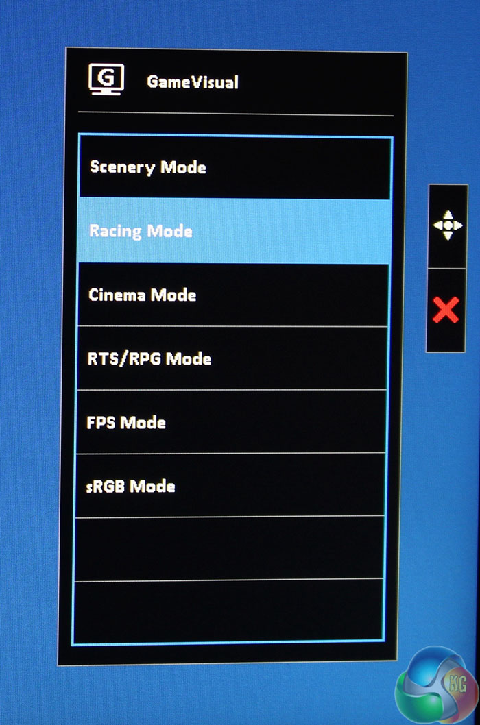 Pressing the joystick inwards brings up a more detailed options menu, which opens on the GameVisual menu.