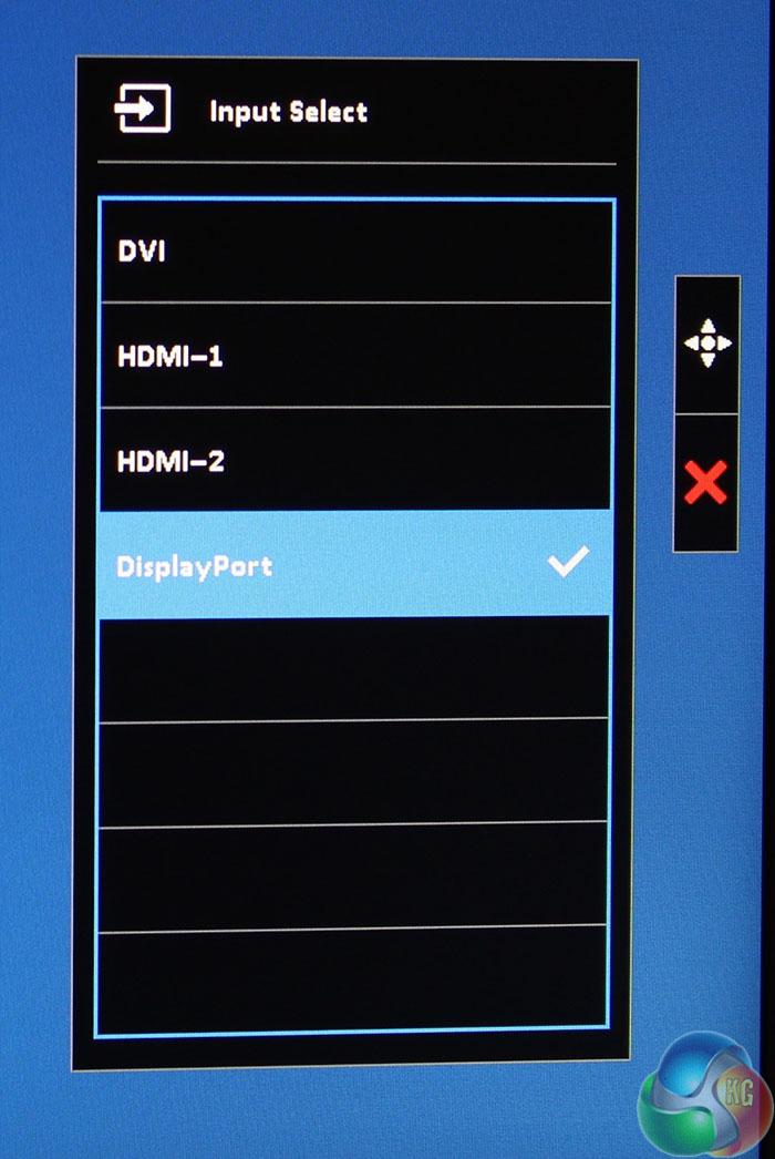 The input menu here displays the same settings as the shortcut, allowing you to choose which input you want to use on the display.