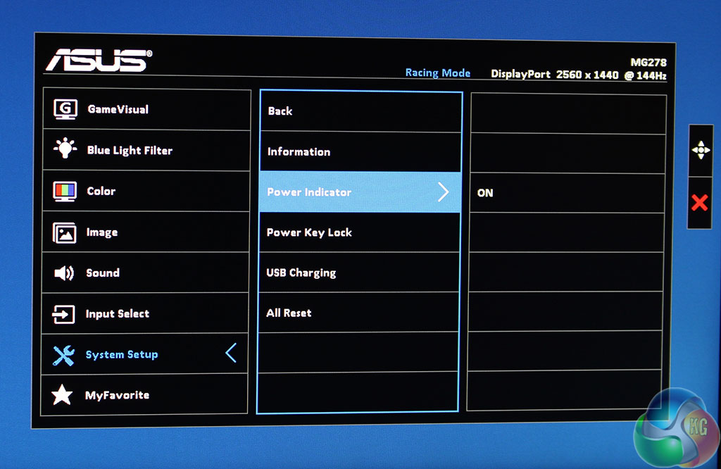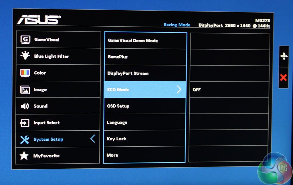The ‘System Setup’ menu is full of settings, with an ECO mode, OSD setup, GamePlus menu and so on. Further down are more options to enable power management, USB charging and display additional info.