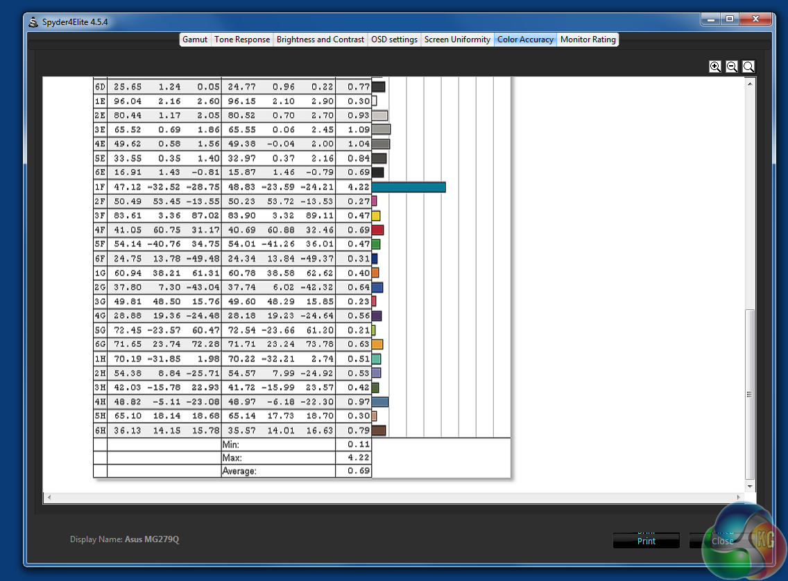 To test how good the MG279Q is as a display in general, we used a Spyder4 Colorimeter, measuring the screen’s brightness, contrast levels and so on without calibrating it to see how it performs out of the box, then calibrated it and measured its colour levels again.
