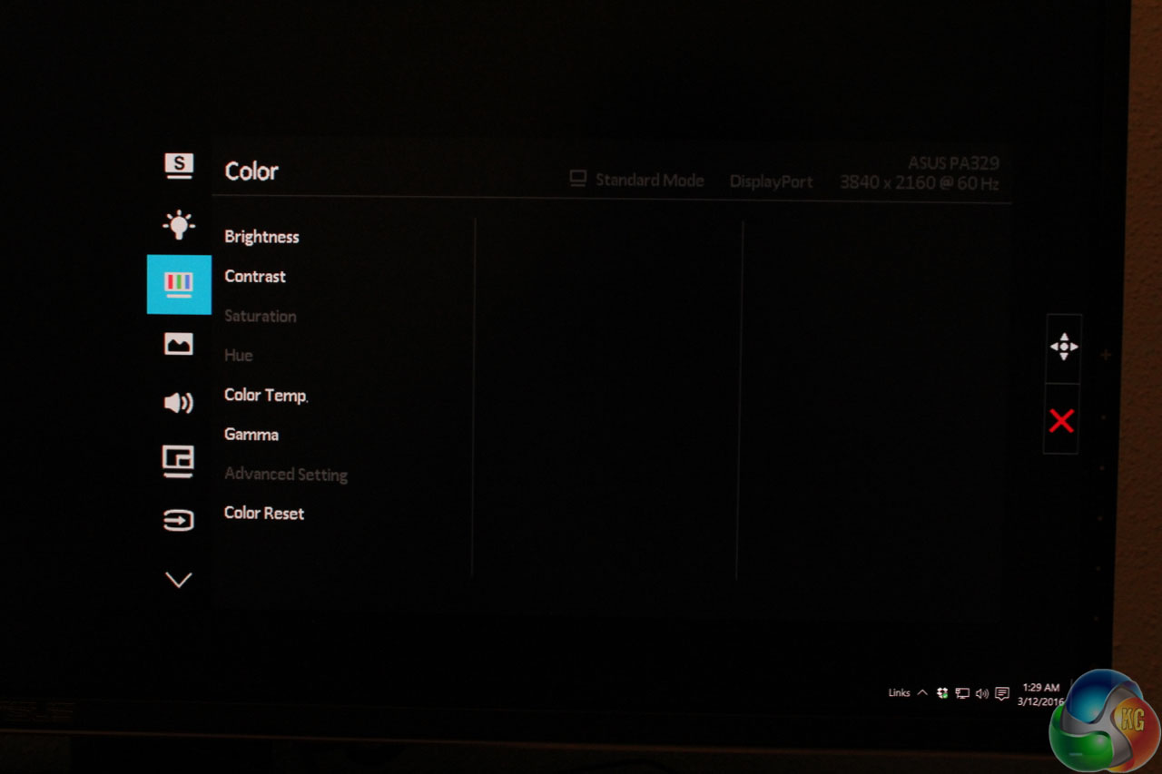 In the Image menu are further options to adjust the picture quality, with Asus VividPixel sharpening the edges of on screen objects, as well as a Uniformity Compensation setting (more on this later).
