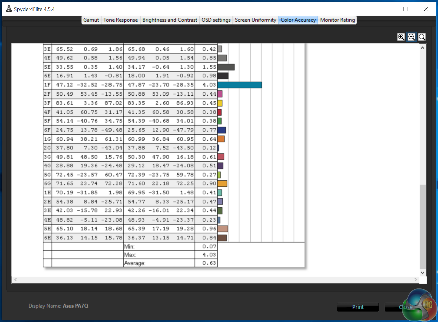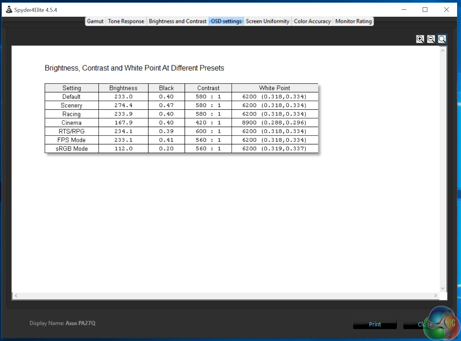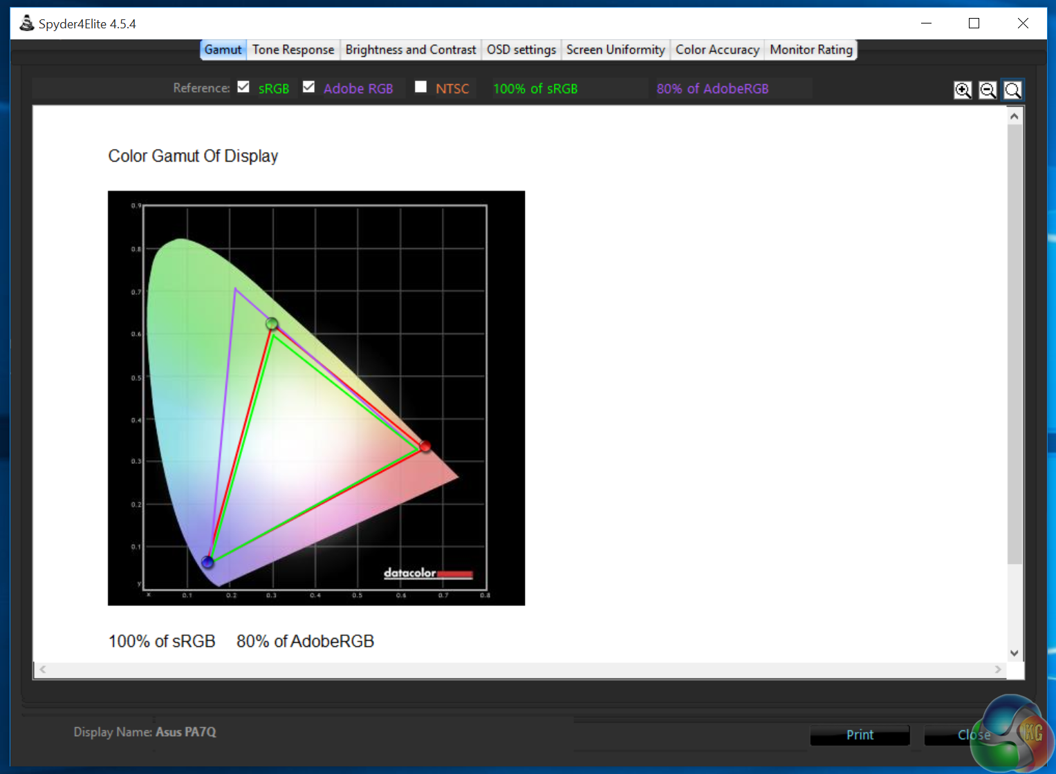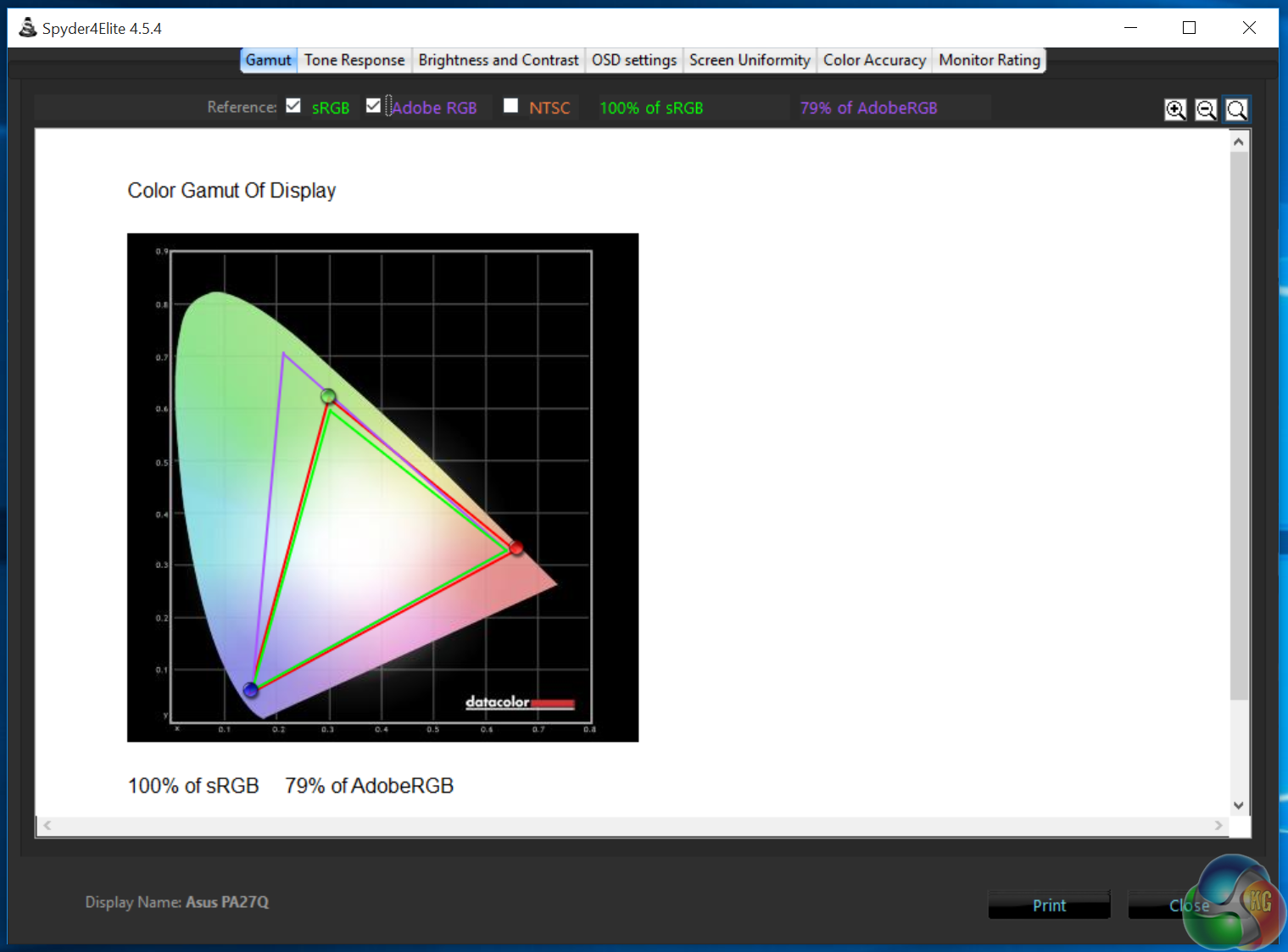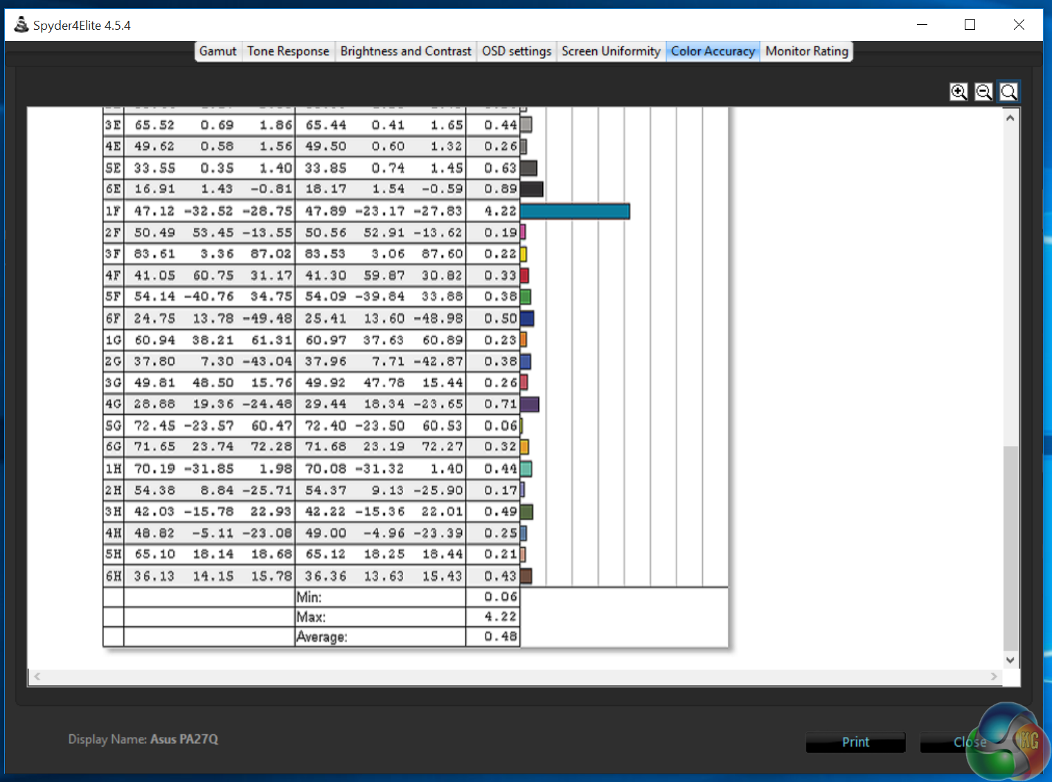 We used a Spyder 4 Elite Colorimeter to measure the colour accuracy of the PA27Q, as we do with all displays. We reset the screen to factory defaults, to measure its out-of-the-box performance, then we calibrated it and measured its colour accuracy afterwards.