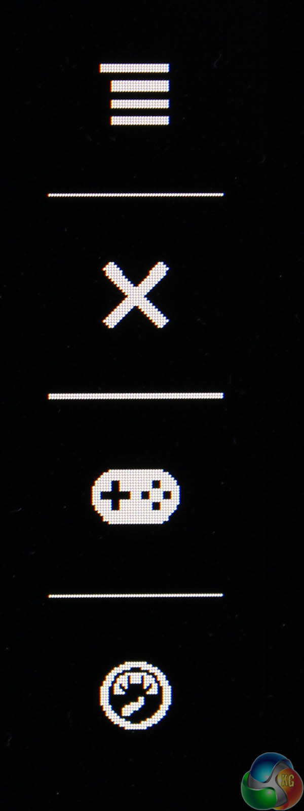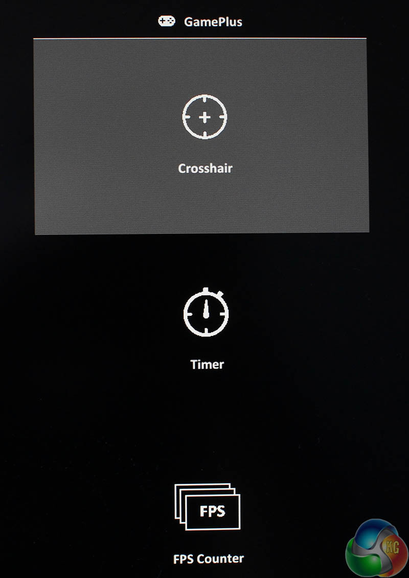 The next button up provides shortcuts to the Game Plus features, which are identical to those on the PG27AQ and other G-Sync displays.