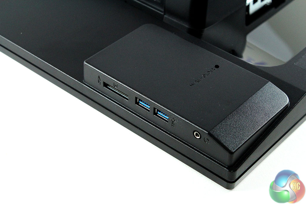 Another relatively uncommon feature of the BenQ BL3201PT is the positioning of the display connectors on the right-hand side of rather than the underside. This makes them much easier to access. You will also find an SD card slot and two of the five USB 3 ports here, with a 3.5mm headphone connector.